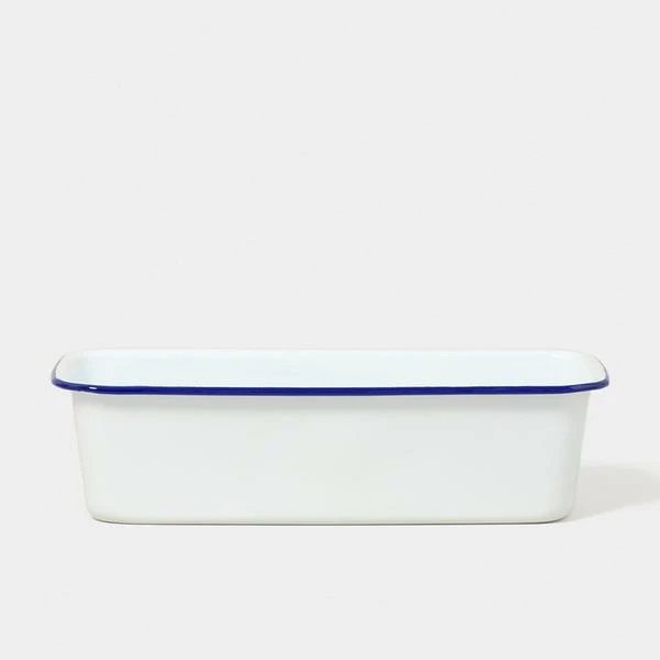 Deze bakset komt uit de collectie van het Britse merk Falcon Enamelware. Sinds 1920 is het emaille Falcon servies een icoon geworden van het Engelse huishouden. Het klassieke witte design met herkenbaar blauw randje werd intussen uitgebreid met nieuwe kleuren. Wat wij zo leuk vinden aan dit servies is het duurzame karakter en de tijdloze elegantie waardoor het leuke objecten zijn voor dagdagelijks gebruik. Deze smalle bakvorm is iets langer dan een standaard broodvorm voor een slankere bakvorm, perfect voor het bakken van brood of gebak. Materiaal: metaal met emaille afwerkingslaag Afmetingen: 31 x 13 x 8 cm Kleur: wit en blauw Onderhoud: mag in de vaatwas Details: mag in de oven tot 270°C, als je dit servies laat vallen kan er een schilfer afbreken maar het zal niet breken Photo credits: https://www.instagram.com/poppie_prints/