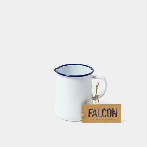 The Falcon 1 Pint Jug is a great addition to a tabletop spread, useful for pouring sauces and drinks. 1 Pint Jugs are 11 cm tall and hold 586 ml. Available in two colours, Classic (White with Blue rim) and Samphire Green Oven-safe up to 530F/270c. Dishwasher Safe. Freezer Friendly. Suitable for gas and electric hobs. Not safe for microwaves. Chemical safe.