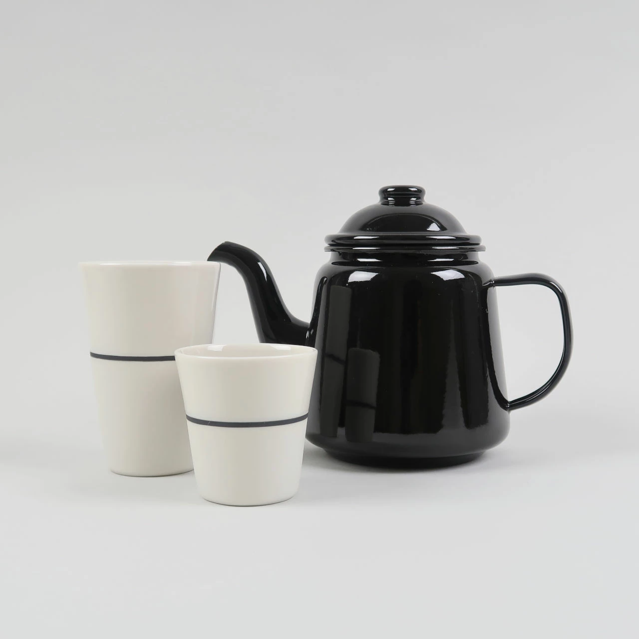 From the revitalized Falconware brand are these enamel teapots in black and white. The teapot holds just under 1 litre of water making it (depending on your cup of choice) a 2-3 cup pot.