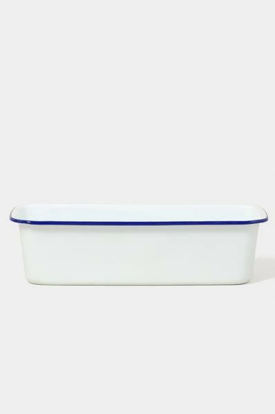 This narrow bake tin is slightly longer than a standard loaf tin to give a more slender bake; perfect for baking bread or loaf cakes. The Falcon range is safe for oven, gas and electric hob use. Dishwasher safe. Enamelware cannot be used in the microwave. If the outer porcelain layer is chipped, the steel beneath it naturally oxidises and the enamelware remains safe to use. 31cm long, 13cm wide and 8cm in depth.