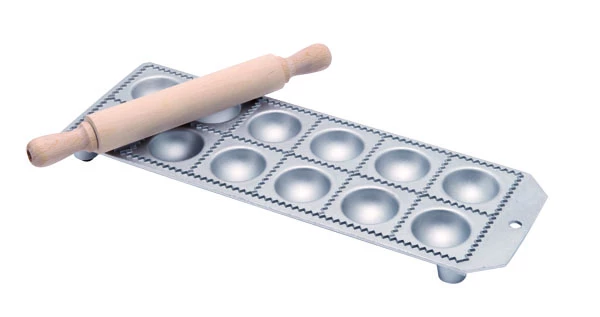 Aluminium Ravioli Trays c/w Rolling Pin – for making authentic home made ravioli. 12 Rd. Ravioli, c/w rolling pin.