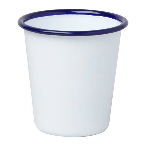 These unbreakable coloured enamel cups by Falcon Enamelware make a stylish addition to any home – with a timeless appeal and incredibly hard wearing finish. Available in the classic white with a dark blue trim. Great to give as a set or individually. The detail… Sold individually. About the designer… Falcon Enamelware has been an icon of British home life since 1920. Originally manufactured in the Black Country area near Birmingham, England, Joe Kleiner & Sons created the original enamelware brand, distinctively ice-white with the blue rim, the classic design is still instantly recognisable to this day. In 2011, the original collection was revitalised – creating new colours and cookware sets along with increasing the gauge of the classic mug, making the products more durable and hard wearing. As well as timeless elegance, Falcon Enamelware has enduring strength. Enamelware is porcelain fused onto heavy-gauge steel, giving it many admirable qualities – durability, smoothness and chemical-resistance. It can assume brilliant, long-lasting colours, and cannot burn. If you drop it, it may chip but it won’t break.