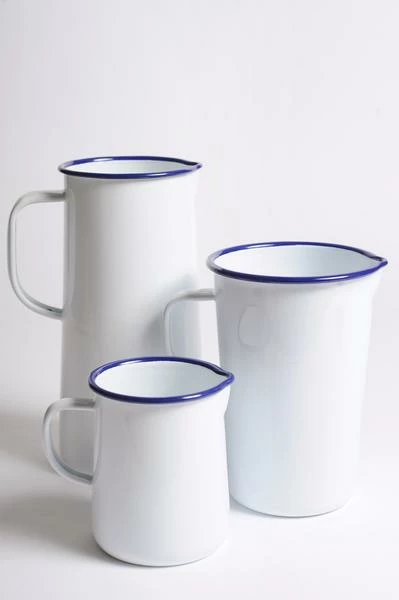 Falcon’s 1 pint jug is a great addition to a tabletop spread, useful for pouring sauces and drinks. The Falcon range is safe for oven, gas and electric hob use. Dishwasher safe. Enamelware cannot be used in the microwave. If the outer porcelain layer is chipped, the steel beneath it naturally oxidises and the enamelware remains safe to use. Made by Falcon Enamelware .