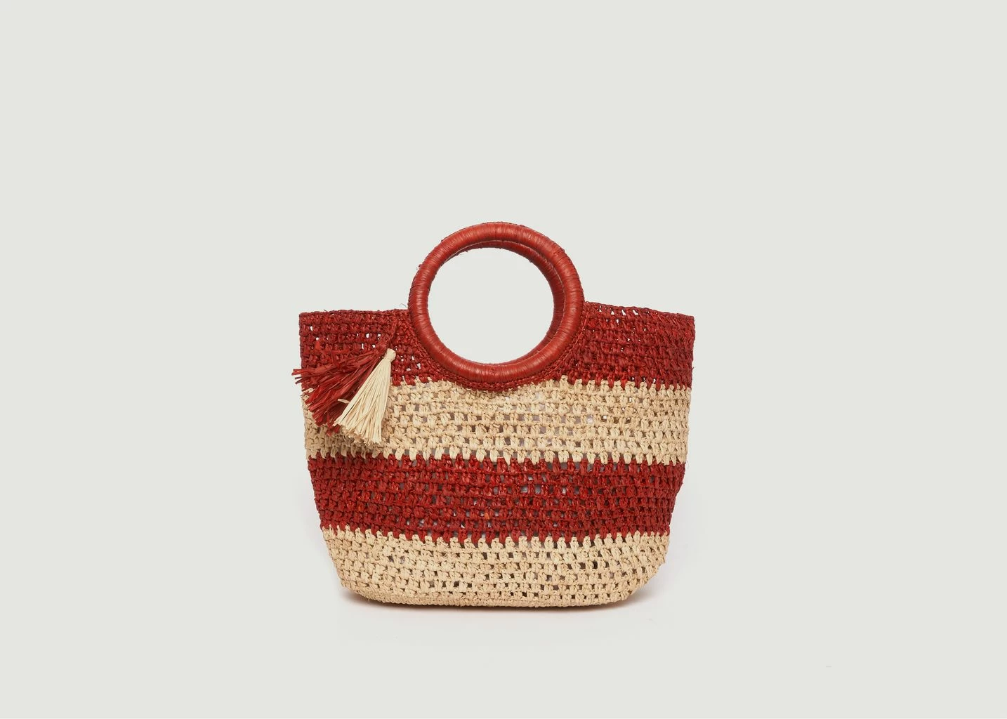 Benjana Basket • Handbag in raffia • Round handles. • Small pompons for decoration • Dimensions: 34cm x 30cm x 10,5cm.