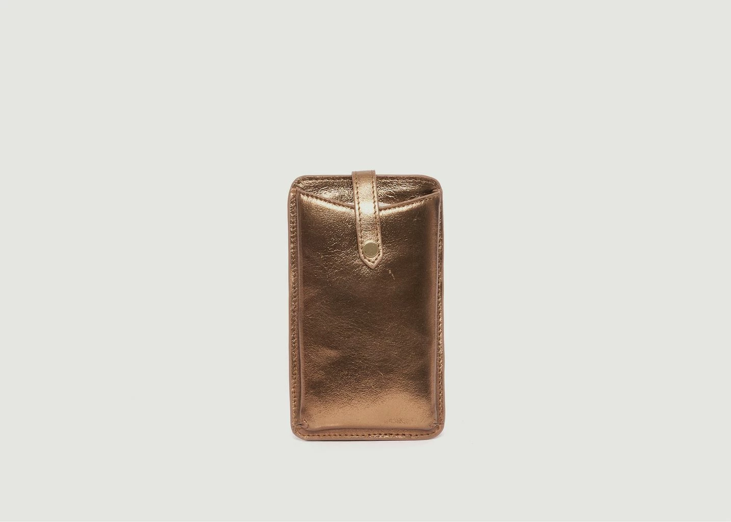 Bronze metallic leather phone case, shoulder strap for carrying on the shoulder or across the chest, snap fastener. Carry your phone safely and stylishly with the Elsa case from Petite Mendigote ! We like the shiny color full of pep which comes to dynamize this case with simple lines.