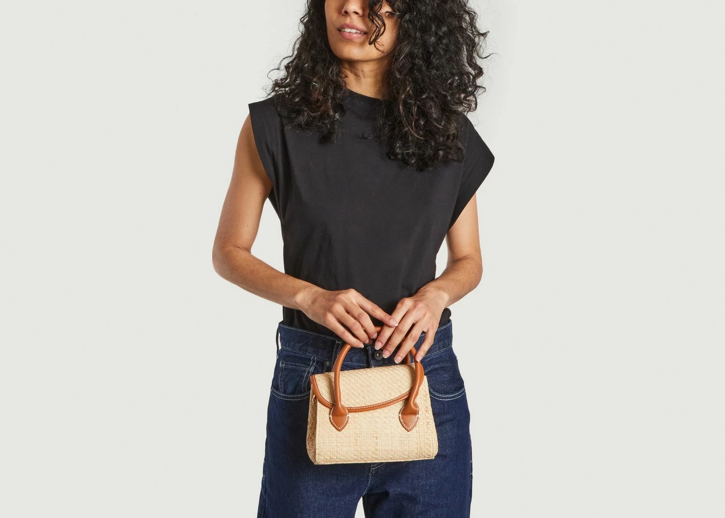 Small bag in natural raffia and camel leather effect details, polyester lining, front flap with magnetic closure, 2 handles for hand carrying, removable shoulder strap for shoulder or cross body carrying. Fall for the Heli bag by Petite Mendigote! It is elegant without being too much, in a slightly retro style, and its natural material is ideal for the beautiful season. Its small size will carry your daily essentials.