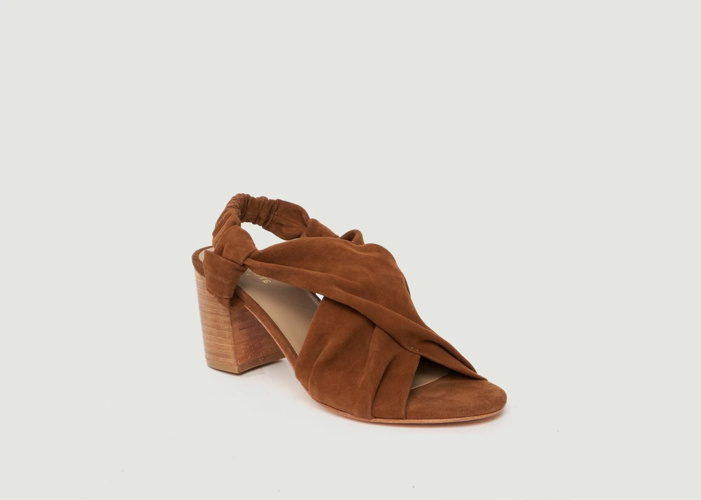 Tobacco colored sandals with a simple slip-on heel. Big straps crossed on the front of the sandal to give a touch of fantasy. For a 39: Heel height: 6.5 cm, foot length: 24.5 cm. For an elegant look without overdoing it, adopt the Jill sandals by Petite Mendigote. Its warm color and classic lines will be easy to match with the beautiful days.