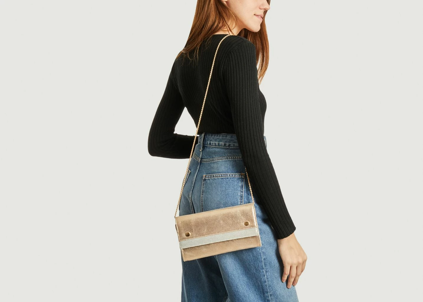 Louisa pouch in thick cowhide leather, gold color, removable gold chain for shoulder strap, two buttons on the front, silver plated yoke on the flap. Melt for the sunny colour of the Louisa clutch bag! Carried on the shoulder or in the hand, you will not be able to do without this Petite Mendigote piece which will brighten up the simplest of your outfits.