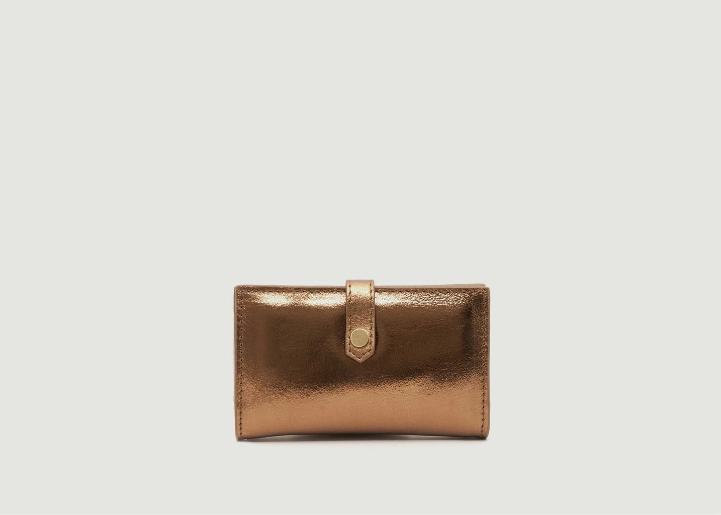 Metallic leather wallet in bronze color, 4 compartments, including one for coins with snap fastener, 5 slots for cards. Adopt without hesitation the Mina model from Petite Mendigote ! We like the shiny color full of pep which energizes this wallet with simple lines.