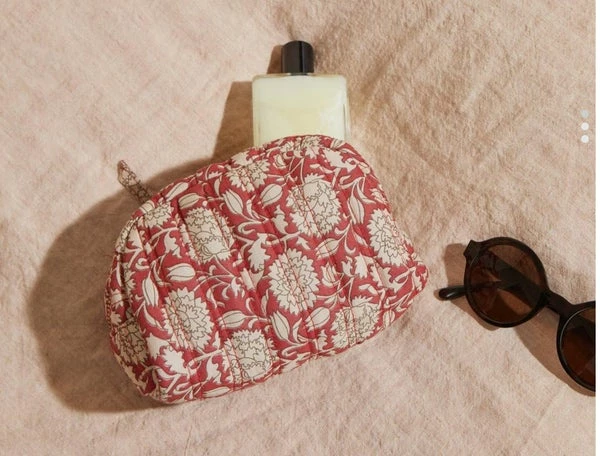 Small quilted case. Floral print. One compartment with a zipper and a small patch pocket inside. 10,5 x 17 x 7 cm