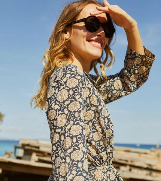 Kaftan dress in cotton voile and buttoned. Long sleeves. Floral print. Length : 131 cm The model is wearing a size S and is 1m71.