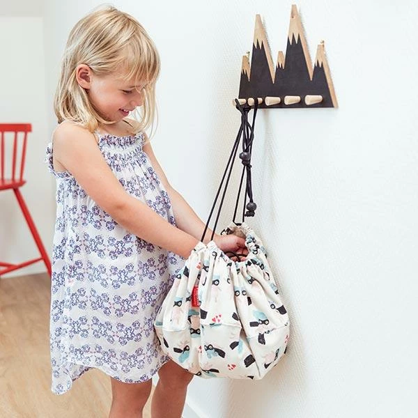 Playmat – Supergirl The original toy bag for storing and transporting all the children’s games in an instant, “play and go” without having to reorganize the spaces dedicated to fun, no more games around. From today everything is easier with this original and multifunctional item that can be transformed from a large play bag into a mat and, if necessary, into a travel bag or closed into an ottoman. It is made of durable cotton and is available with a variety of colorful and fun patterns. Details: material: 100% cotton measurements: diameter 40 cm color: patterned outside and cream inside maintenance: machine washable brand: play & go.