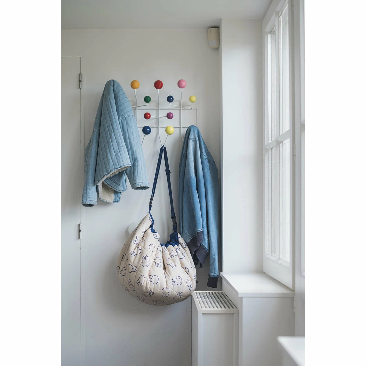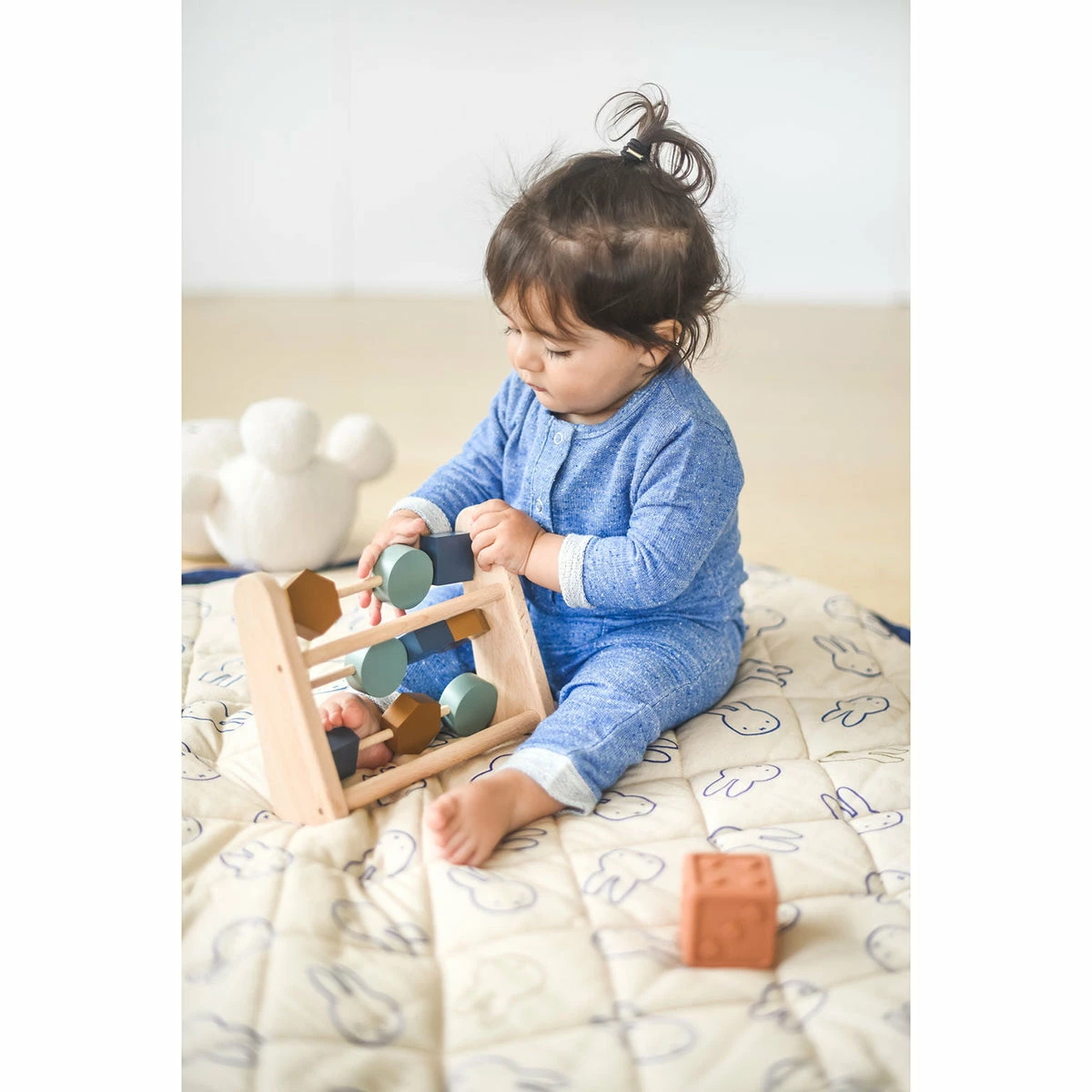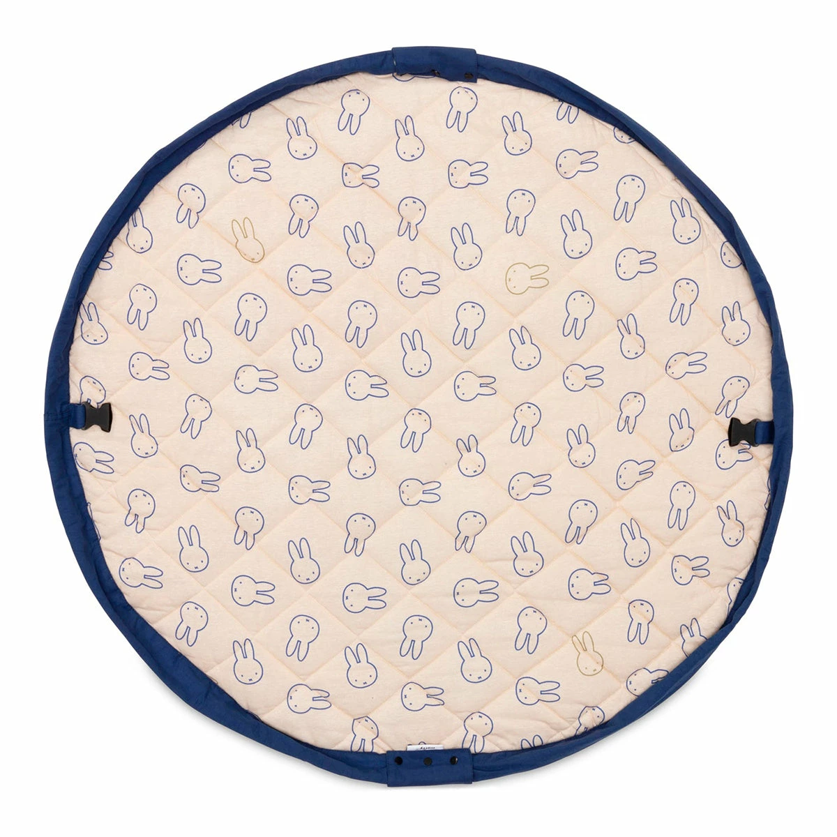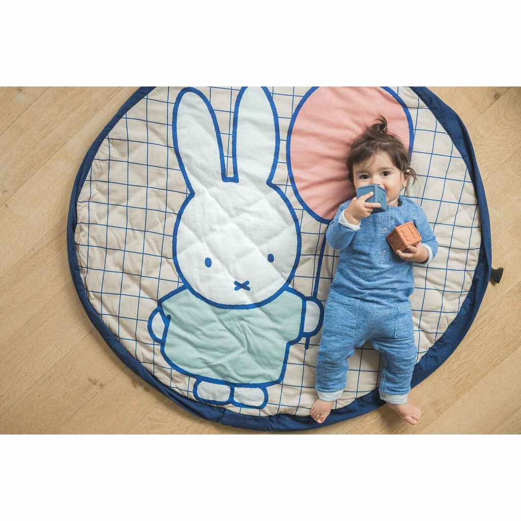 Discover the soft 3-in-1 baby playmat with Miffy design from Play&Go! A big friend for your little one: Miffy, the iconic bunny that everyone knows and cherishes. A storage bag, playmat and diaper bag in 1, adorned with the iconic illustration of Miffy; to take with you wherever you go. Easily store toys and other baby accessories in the bag, attach it to a stroller and when you’re ready to relax, create an instant play area for your baby, with everything you need in it. A fantastic collaboration between Play&Go & Miffy, to celebrate Miffy’s endless playfulness and curiosity and inspire your child to do the same. Details Playmat | Storage bag | Diaper Bag | Double side printed | Diamond stitching on the outside | Padded | Adjustable shoulder strap Composition 100% Jersey Cotton Dimensions Diameter 120cm