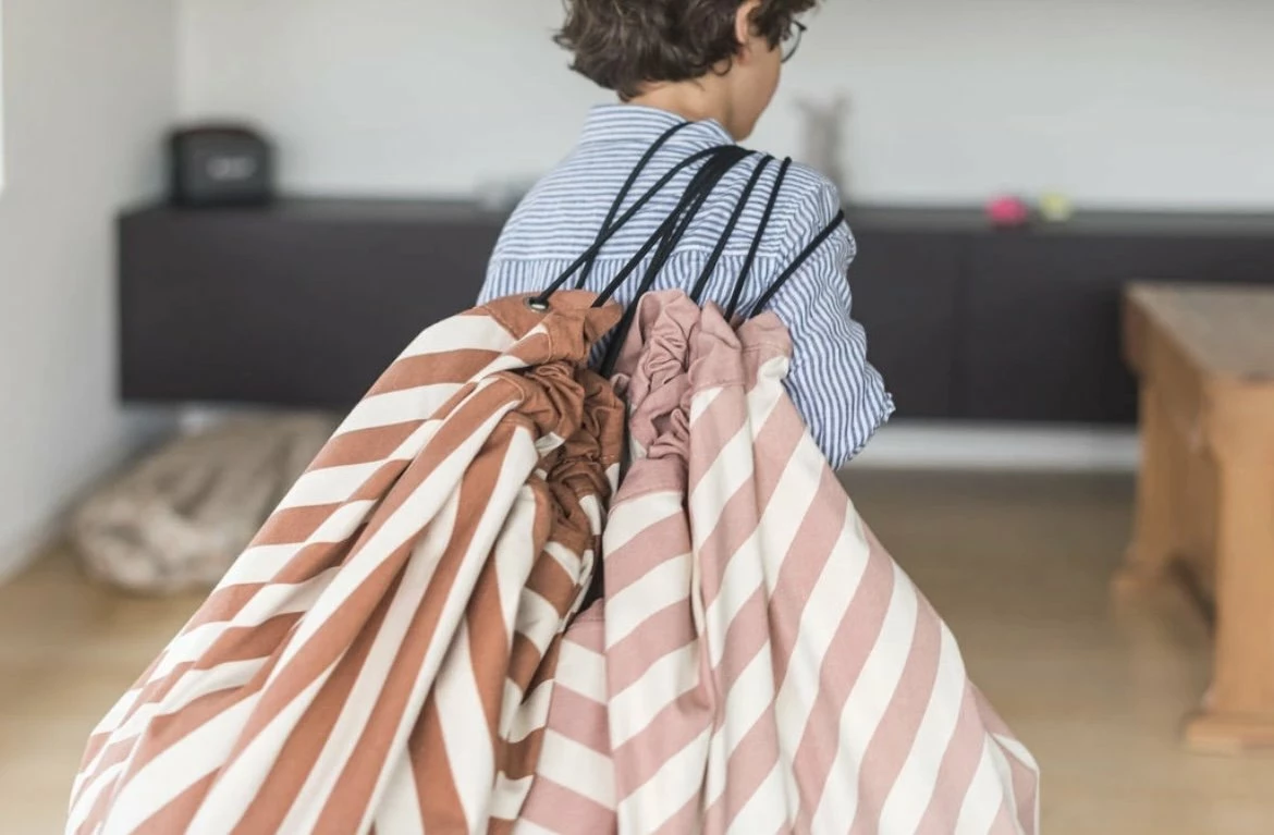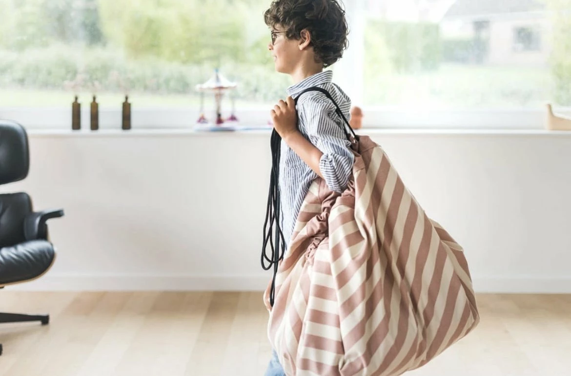 Tappeto Portagiochi – New Stripe Pink L’originale sacco portagiochi per riporre e trasportare in un attimo tutti i giochi dei bambini, “gioca e vai” senza dover riodinare gli spazi dedicati al divertimento, mai più giochi in giro. Da oggi tutto è più semplice con questo articolo originale e multifunzionale che da capiente sacco giochi si può trasformare in un tappetino e all’occorrenza in un sacco da viaggio o da chiuso in un pouf. E’ realizzato in un resistente cotone ed è disponibile con una serie di colorate e divertenti fantasie. Dettagli: materiale: 100% cotone misure: diametro 140 cm manutenzione: lavabile in lavatrice marca: play&go