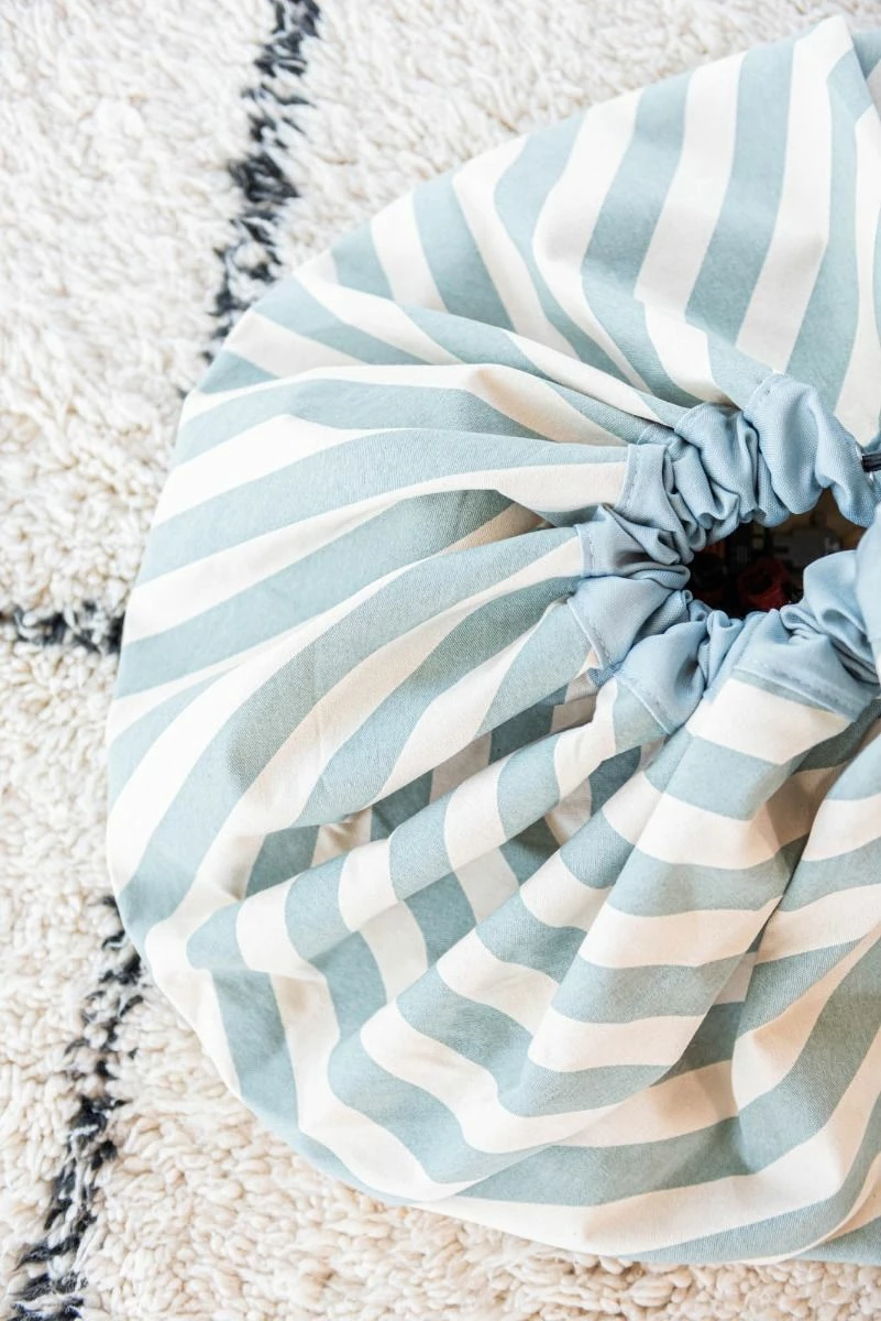 Tappeto Portagiochi – Righe Verde L’originale sacco portagiochi per riporre e trasportare in un attimo tutti i giochi dei bambini, “gioca e vai” senza dover riodinare gli spazi dedicati al divertimento, mai più giochi in giro. Da oggi tutto è più semplice con questo articolo originale e multifunzionale che da capiente sacco giochi si può trasformare in un tappetino e all’occorrenza in un sacco da viaggio o da chiuso in un pouf. E’ realizzato in un resistente cotone ed è disponibile con una serie di colorate e divertenti fantasie. Questa variante offre in più la possibilità di essere colorato con i pennarelli inclusi nella confezione. Dettagli: materiale: 100% cotone misure: diametro 140 cm manutenzione: lavabile in lavatrice marca: play&go