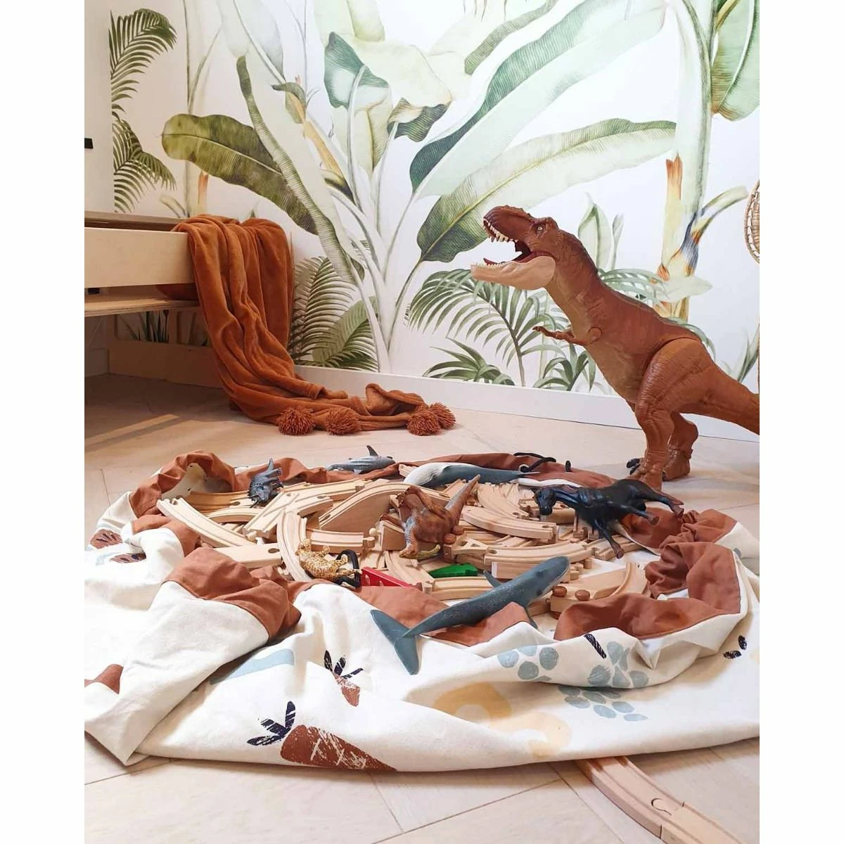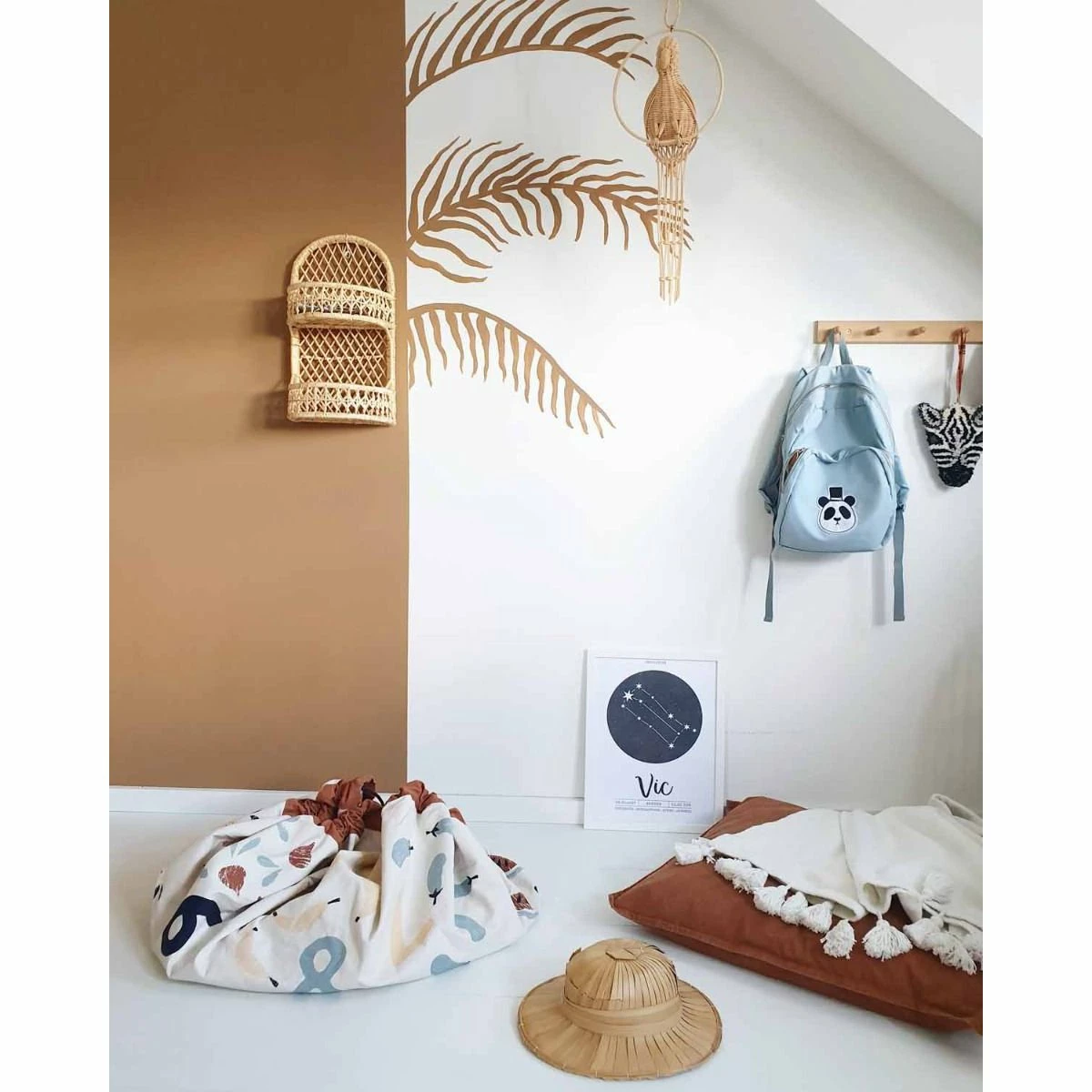 What’s your favourite number? How about food? Count up to 9 with this pretty earth colored playmat which features a collection of delicious fruit and vegetables including bananas, pineapples and watermelons. A great way to encourage kids to learn numbers as well and play safely both on their own or with friends and family. The large generous mat with double-sided design featuring two colourful environments in which to rest or explore with their favourite toys. When you’re done simply tidy everything together. Ideal for the garden, the bedroom, beach, park or school this bag is perfect for everyone and makes learning accessible and fun for boys and girls of all ages. Fabric: 70% cotton – 30% polyester Dimensions: Diameter 140 cm Colour: Veggie Numbers