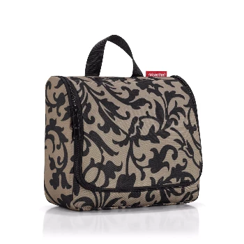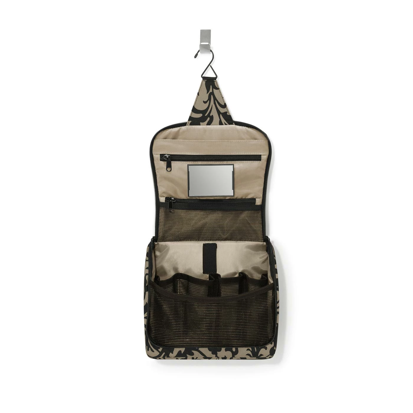 FOLDABLE TOILET BAG by Reisenthel has one main compartment with 4 pockets as well as two zipped pockets for smaller items – along with a suspension hook. Plus one long slide in pocket in the cover.