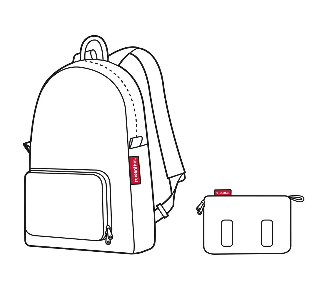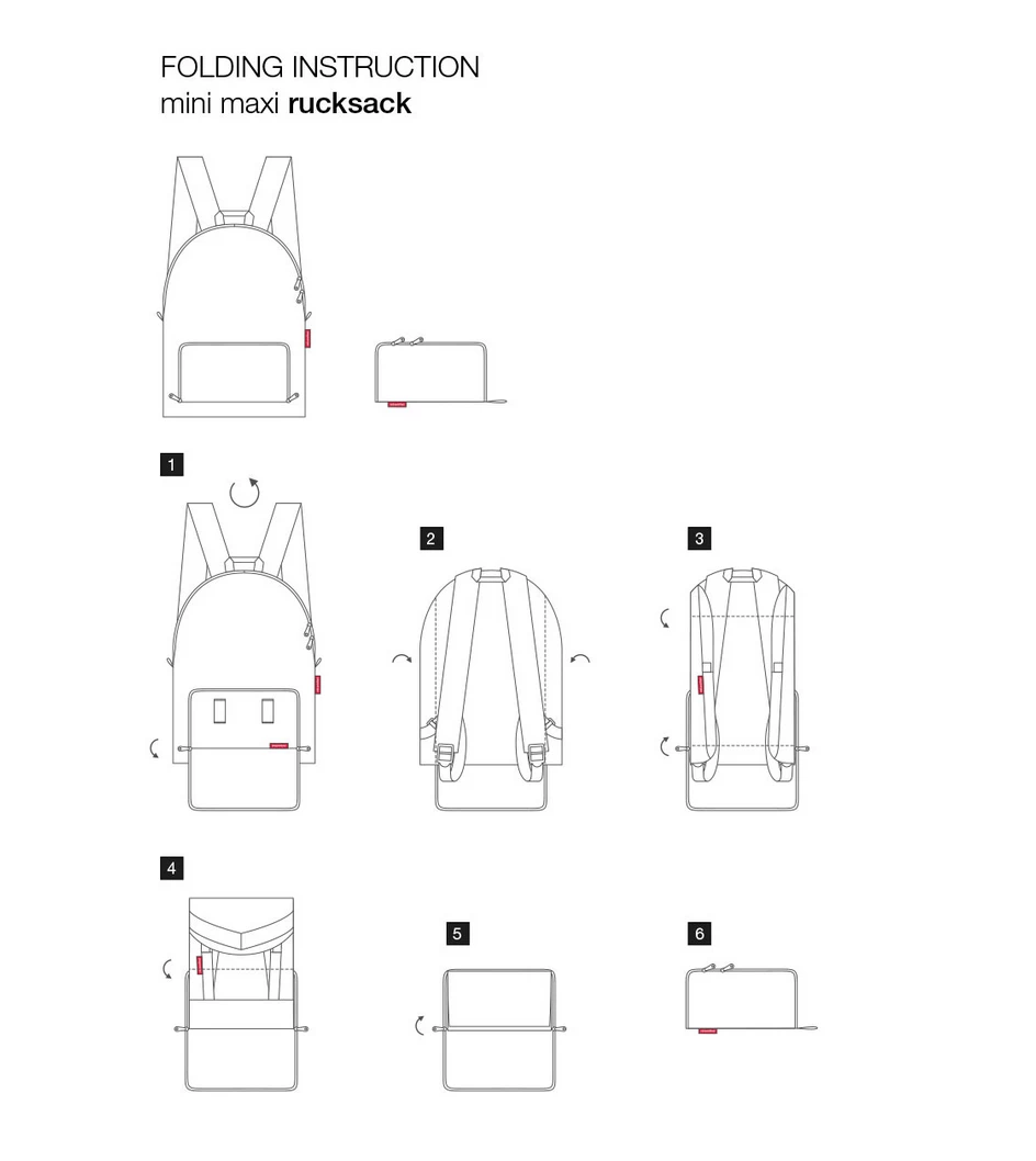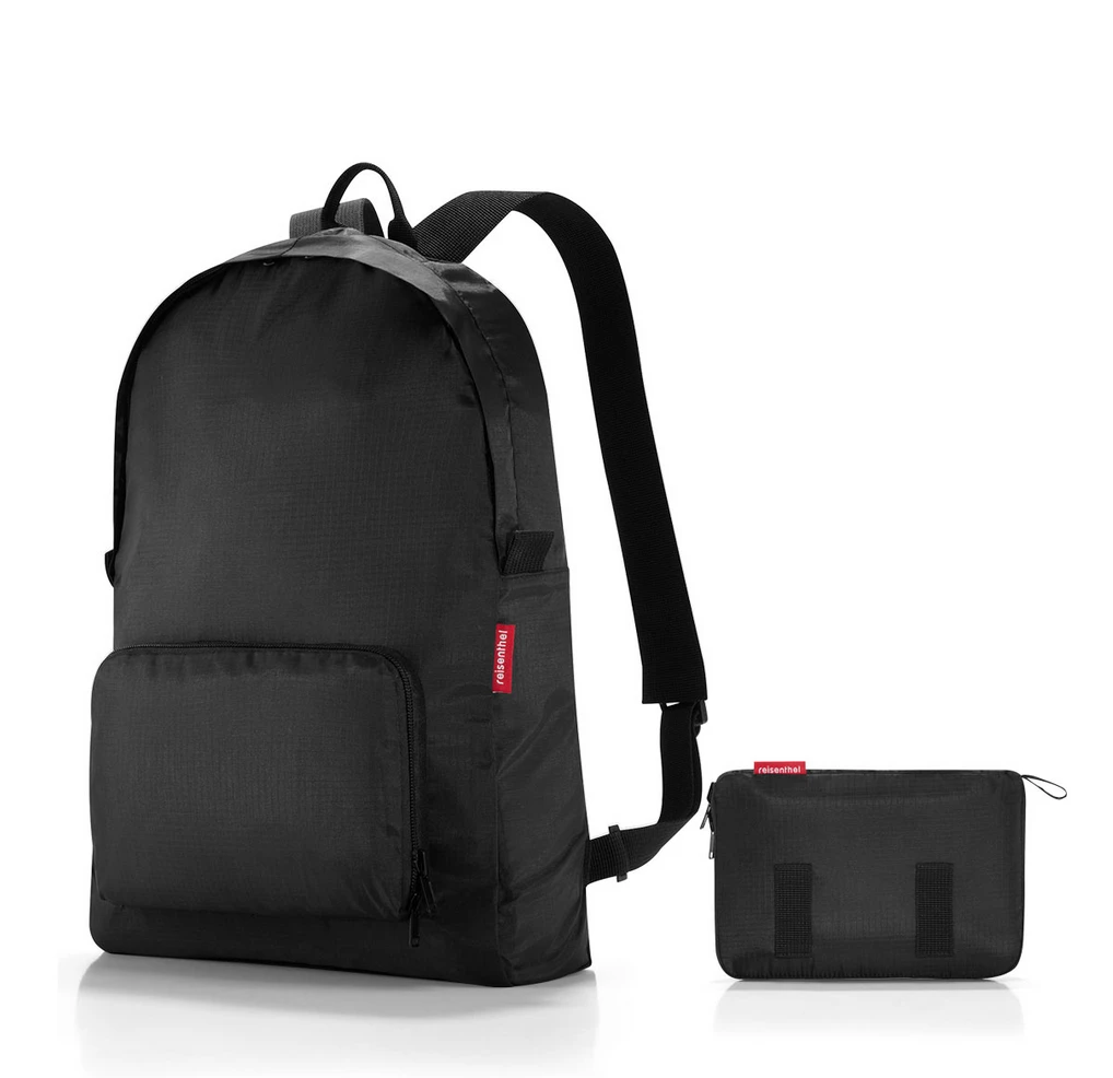 Reisenthel’s Mini Maxi Black Rucksack. The rucksack fits compactly into its own front pocket. When you need it, you have it – threefold: Optimum weight distribution, plenty of space and both hands free!