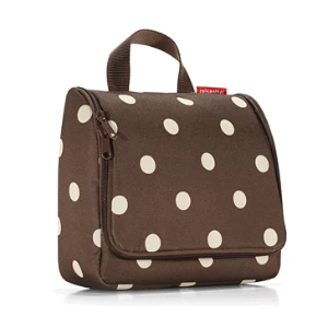 FOLDABLE TOILET BAG by Reisenthel has one main compartment with 4 pockets as well as two zipped pockets for smaller items – along with a suspension hook. Plus one long slide in pocket in the cover.