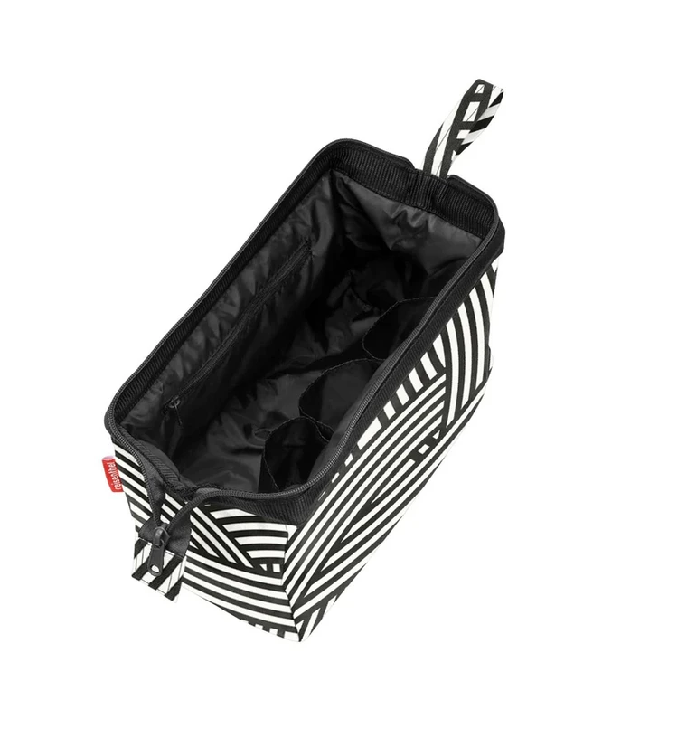 Reisenthel Cosmetic Bag. A great sized bag that can be opened fully so you can easily access contents like a doctors/gladstone bag. There are three compartments to keep bottles upright inside and a small zipped pocket on the opposite side.