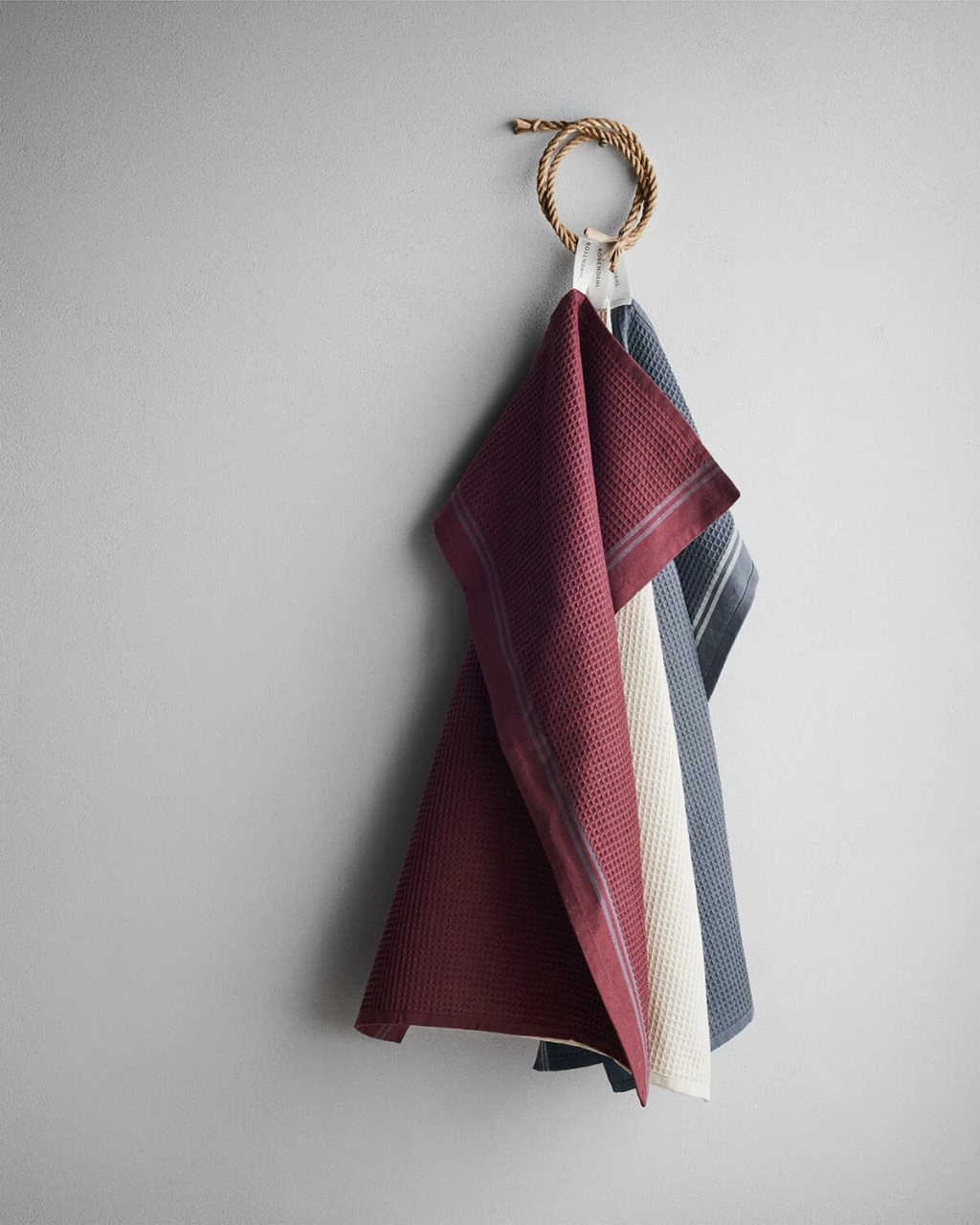 Der Scandinavian Way of Life Drei verschiedene Farben dreimal beste Bio Baumwolle und eine saugstarke Waffelstruktur. Mit ihrer neuen Geschirrtuch-Kollektion erweitert Rosendahl sein Designuniversum und bietet GOTS zertifizierte Alltagshelden für unsere Küche im feinen Style. Rosendahl Alpha Geschirrtuch 50×70 GOTS Bio Baumwolle Peppen Sie Ihre Küche stylish auf und schenken Sie sich und Ihrer Familie nicht nur ein feines Skandi-Design sondern auch ein starkes Stück Nachhaltigkeit. Das A und O dafür kommt von Rosendahl Design die mit dem Geschirrtuch Alpha den Auftakt ihrer neuen Geschirrtuchkollektion vorstellen. Mit einer saugfähigen Waffelstruktur und zwei hell abgesetzten Streifen auf jeder Seite des sandfarbenen bordeauxfarbenen oder grauen Geschirrtuchs setzt ALPHA besonders feine Akzente in weißen und dunklen Küchen. Jedes Tuch besteht zu 100% aus reiner Bio Baumwolle und spart damit bis zu 99% Wasserverbrauch beim Anbau ein. Die GOTS zertifizierte Herstellung garantiert obendrauf eine faire und nachhaltige Produktion ohne bedenkliche Chemie Farbstoffe und unter sozial verantwortungsvollen Bedingungen. Material 100% Bio Baumwolle GOTS zertifizierte Herstellung certified by Control Union CU1026087 Maße 50 x 70 cm Hersteller Rosendahl
