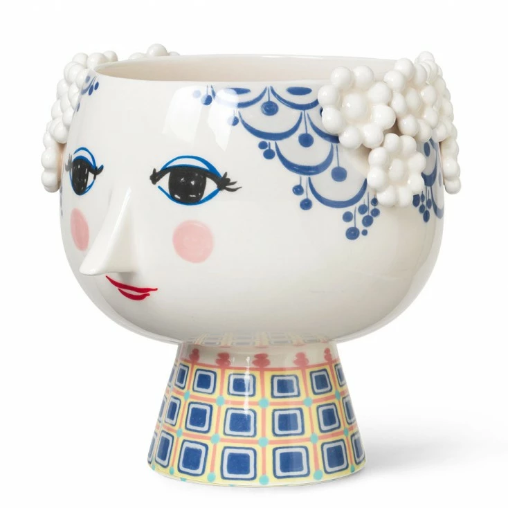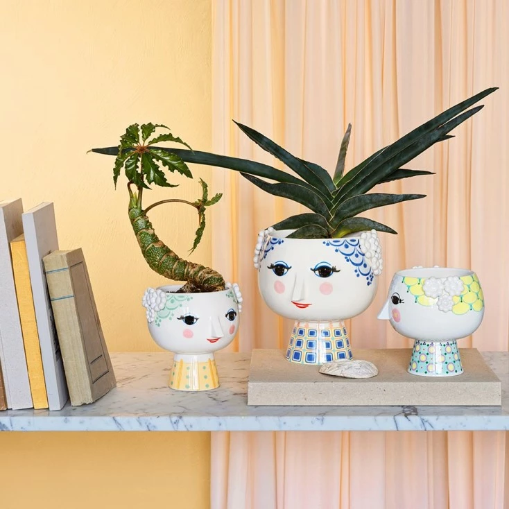 Ideal for displaying kitchen herbs, small leafy plants or arranged flower compositions, whatever hairstyle you give her she is sure to raise a smile!