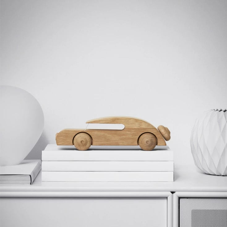 Kay Bojesen created the sophisticated yet accessible car design especially for slightly older children who had grown out of clumsy designs on wide wheels and instead craved engine power worthy of a true superhero.
