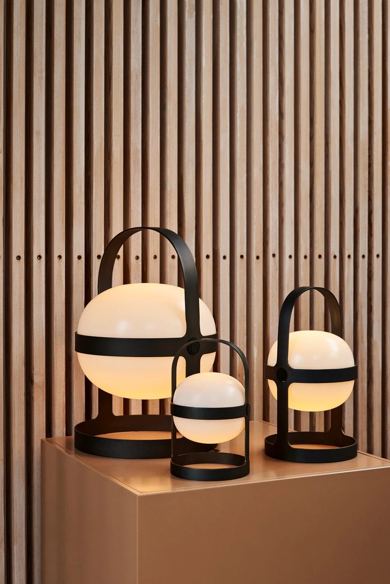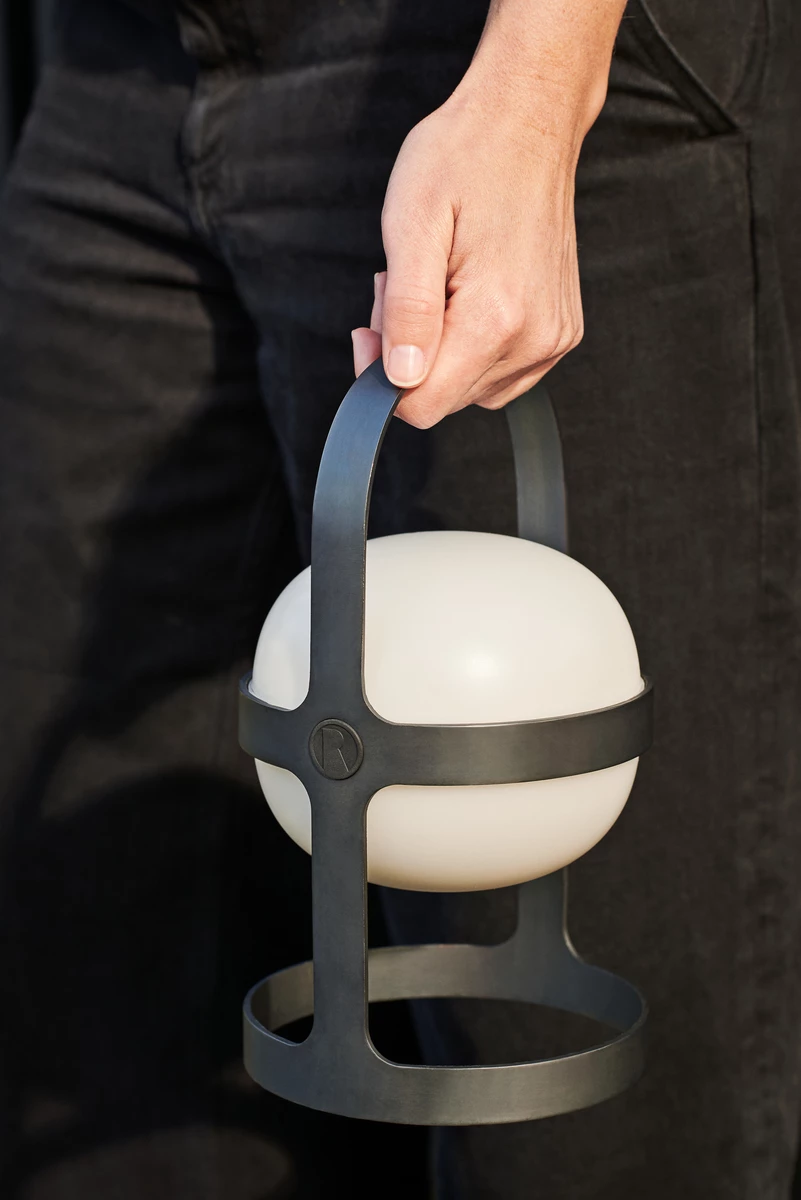 Rosendahl’s Soft Spot Solar Lamp is a superb portable, solar-powered version of the popular original design. The Soft Spot Solar Lamp consists of a large spherical ball, held within a sturdy metal frame which acts as both handle and stand. Rechargeable batteries and integrated solar cells give you the option of totally green charging courtesy of the power of the sun or topping up with a USB when it’s dark. Designed to tolerate wind and rain, the powerful lamp can even endure temperatures up to minus 20 degrees making it a perfect outdoor companion at any time of year. Although designed to bring light and atmosphere to gardens and terraces, its use is by no means limited to outdoor spaces and it works equally well at creating ambiance within the home. Fully charged, the Soft Spot Solar will provide approximately 15 hours of light.