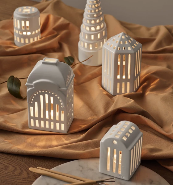Urbania light houses bring the silhouettes of urban space to the home.The warm light streams from the many hand-carved windows of the porcelain town, inspired by years of architecture. 11 x 18.5 x 8.5 cm Material: Ceramic